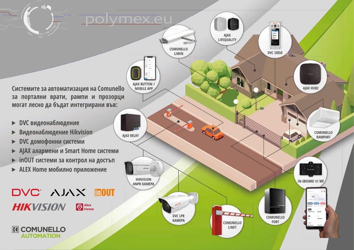 Контрол на достъпа за жилищни и обществени сгради, търговски центрове, офиси, училища Интелигентни трафик системи, паркинги, логистични центрове Броячи и идентификация на контейнери, палети, стоки, багажи